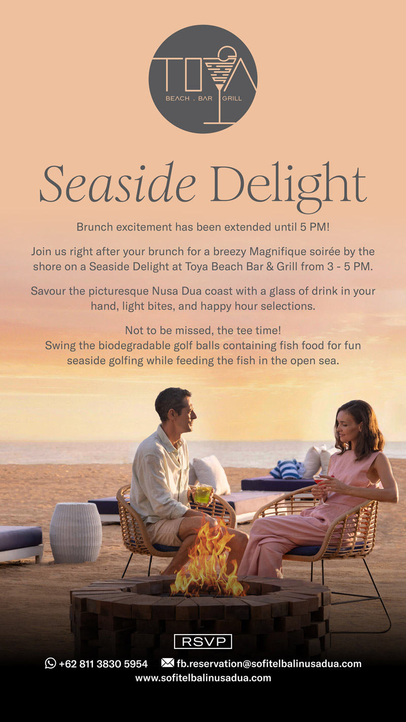 But the excitement doesn’t end there! From 3pm to 5pm, we’re extending the brunch with our Seaside Delight experience by the beach. Indulge in craft cocktails, savory canapés, and seaside golf. It’s an extension not to be missed!